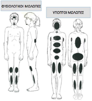 – Αιματώματα, αμυχές ή άλλα τραύματα στο στήθος, τους γλουτούς, το υπογάστριο ή τους μηρούς.